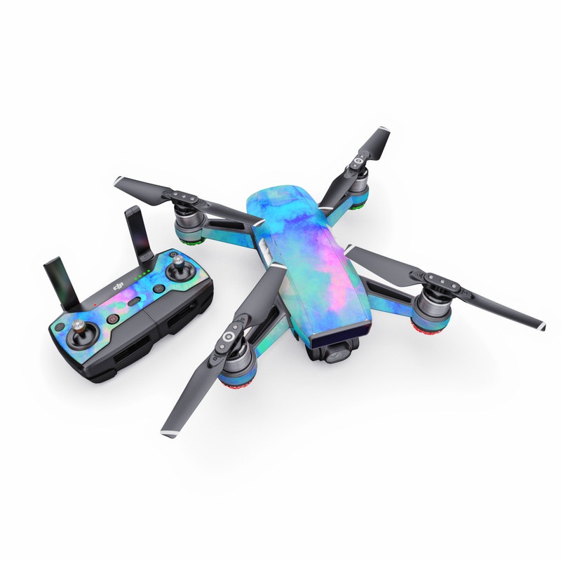 iStyles DJI Spark Skin design of Blue, Turquoise, Aqua, Pattern, Dye, Design, Sky, Electric blue, Art, Watercolor paint, with blue, purple colors, and tagged with abstract, patterns.