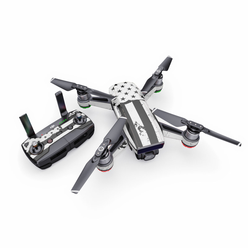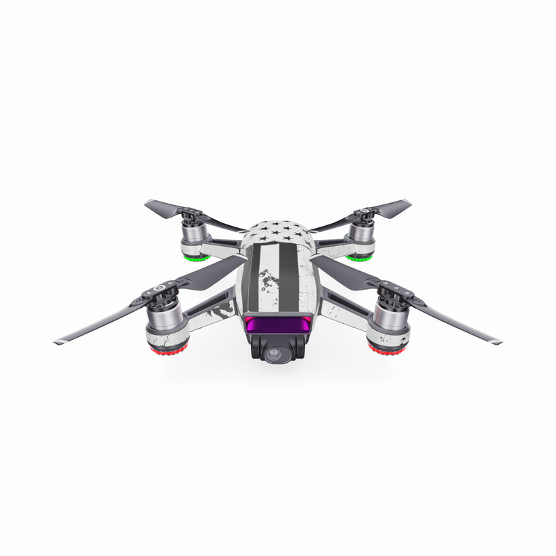 iStyles DJI Spark Skin design of Line, Black-and-white, Text, Monochrome, Pattern, Design, Monochrome photography, Font, Parallel, Style, with white, black colors, and tagged with flags, patterns, america, b&w, black, flag, grunge, patriotic, usa, white, worn.
