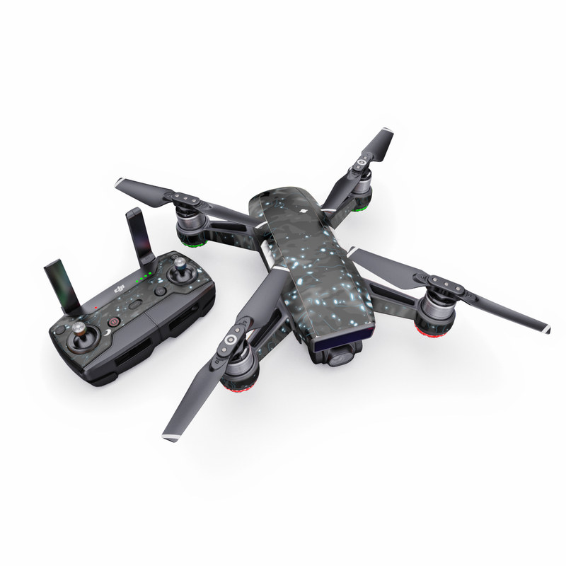 iStyles DJI Spark Skin design of Black, Water, Space, Black-and-white, Granite, with blue, white, gray, blue colors, and tagged with space, patterns, black, blue, camo, galaxy, space, stars, universe.