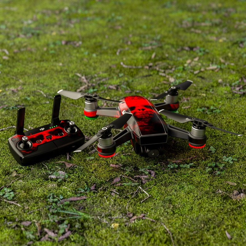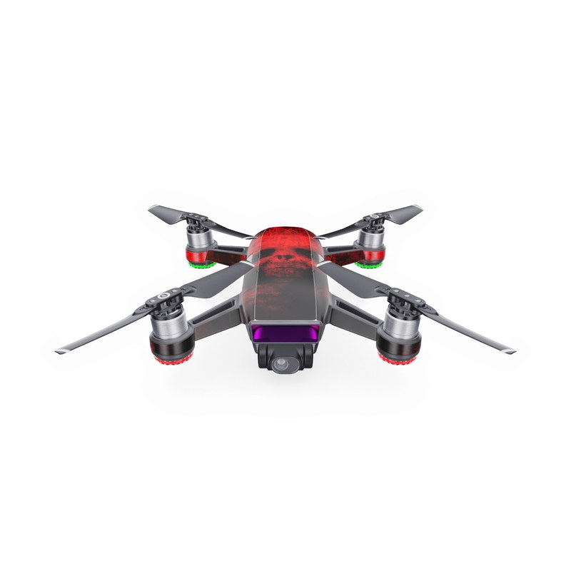 iStyles DJI Spark Skin design of Red, Skull, Bone, Darkness, Mouth, Graphics, Pattern, Fiction, Art, Fractal art, with black, red colors, and tagged with skulls.