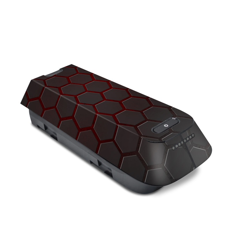iStyles 3DR Solo Battery Skin design of Black, Pattern, Metal, Design, Mesh, Carbon, Space, Wallpaper, with black, red colors, and tagged with lookslike, fantasy, space, drones, geometric, hexagon, tech.