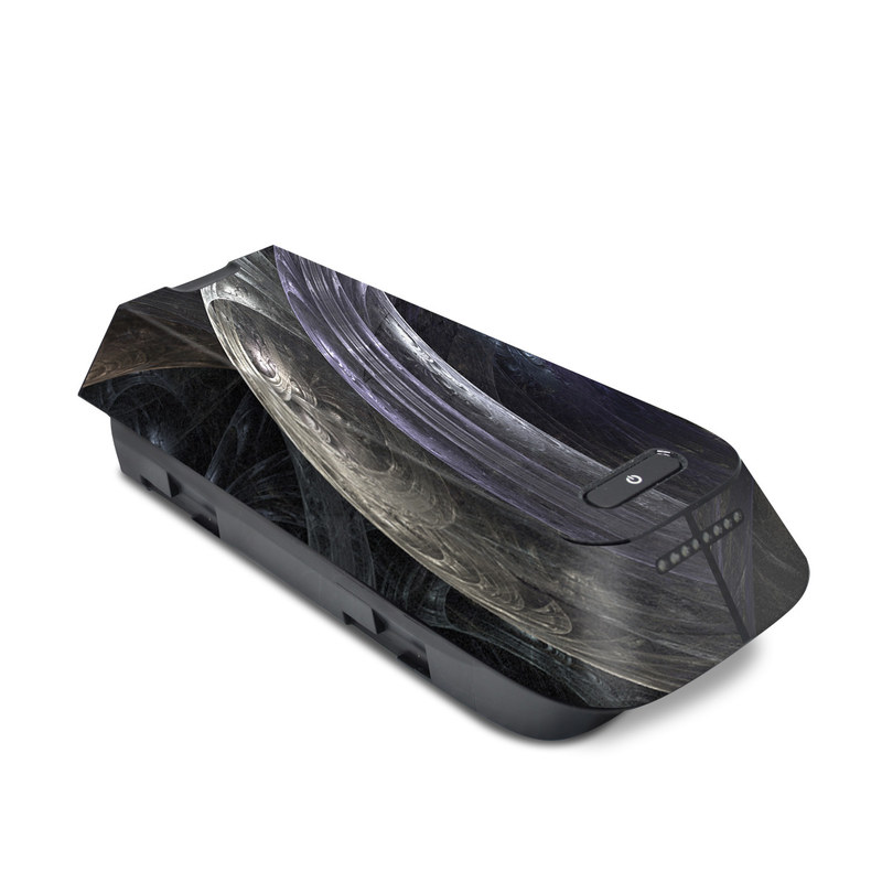 iStyles 3DR Solo Battery Skin design of Fractal art, Graphic design, Art, Cg artwork, Darkness, Circle, Pattern, Illustration, Graphics, Metal, with black, gray, blue colors, and tagged with fractals.