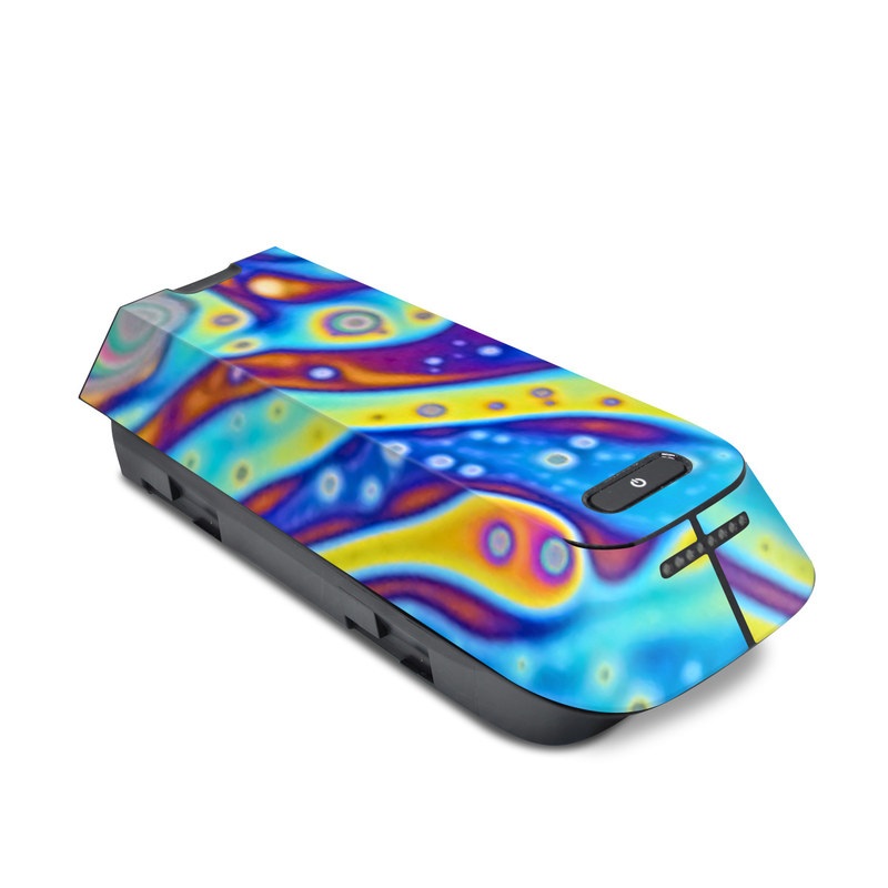 iStyles 3DR Solo Battery Skin design of Psychedelic art, Blue, Pattern, Art, Visual arts, Water, Organism, Colorfulness, Design, Textile, with gray, blue, orange, purple, green colors, and tagged with patterns.