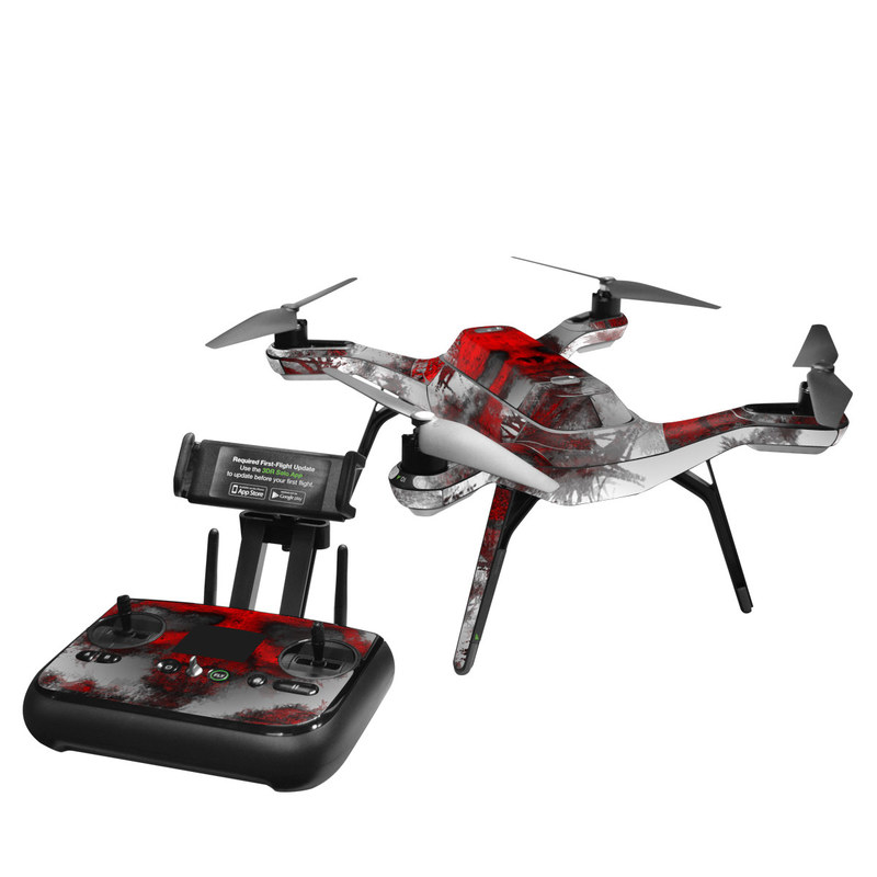 iStyles 3DR Solo Skin design of Red, Graphic design, Skull, Illustration, Bone, Graphics, Art, Fictional character, with red, gray, black, white colors, and tagged with skulls.