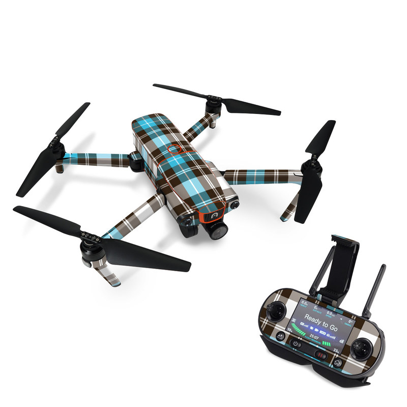 iStyles Autel EVO Skin design of Plaid, Pattern, Tartan, Turquoise, Textile, Design, Brown, Line, Tints and shades, with gray, black, blue, white colors, and tagged with patterns.