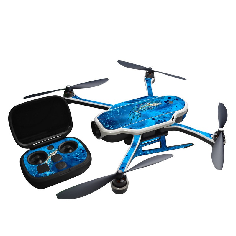 iStyles GoPro Karma Skin design of Blue, Water, Aqua, Electric blue, Illustration, Graphic design, Liquid, Graphics, Marine biology, Art, with blue, white colors, and tagged with skulls, animals.