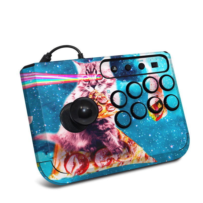 iStyles HORI Fighting Stick Mini 4 Skin design of Illustration, Organism, Graphic design, Art, Space, Fictional character, Extreme sport, Graphics, with blue, white, gray, yellow, red, orange colors, and tagged with space, animals, fantasy, animals, funny, galaxy, lasers, random, space, weird.