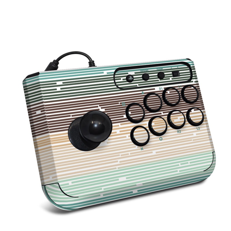 iStyles HORI Fighting Stick Mini 4 Skin design of Line, Parallel, Pattern, with blue, brown, yellow, orange colors, and tagged with patterns, beach, lines, ocean, sand, stripes, summer, surf.