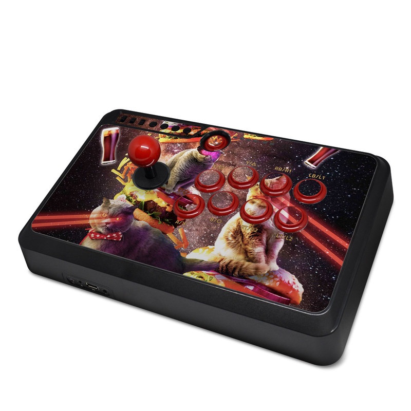 iStyles Mayflash Arcade Fightstick F500 Skin design of Circus, Performance, Event, Graphic design, Art, Illustration, Fictional character, with black, white, purple, brown, gray, yellow, green colors, and tagged with animals, fantasy, space, objects, animal, animals, burger, cat, cats, eat, food, galaxy, lasers, space, universe.