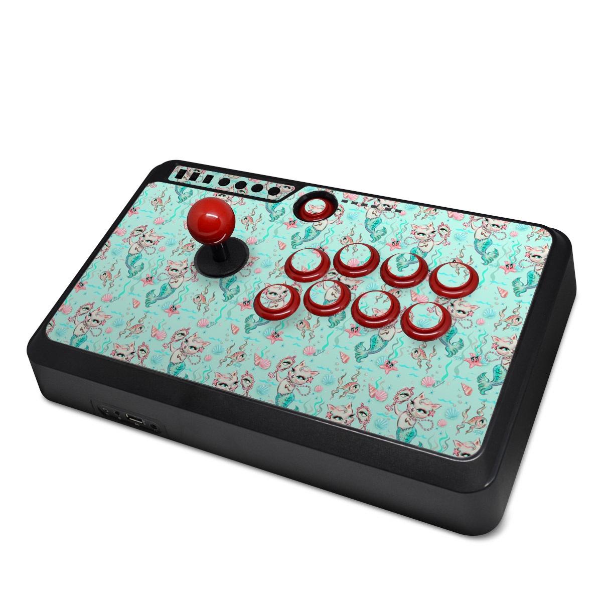 iStyles Mayflash Arcade Fightstick F500 Skin design of Green, Aqua, Pattern, Teal, Turquoise, Pink, Textile, Wrapping paper, Design, with blue, pink, white, green colors, and tagged with patterns, animals, fantasy, objects, animals, cat, kitten, kittens, mermaid, mermaids, ocean, pastel, pattern, sea, sealife.