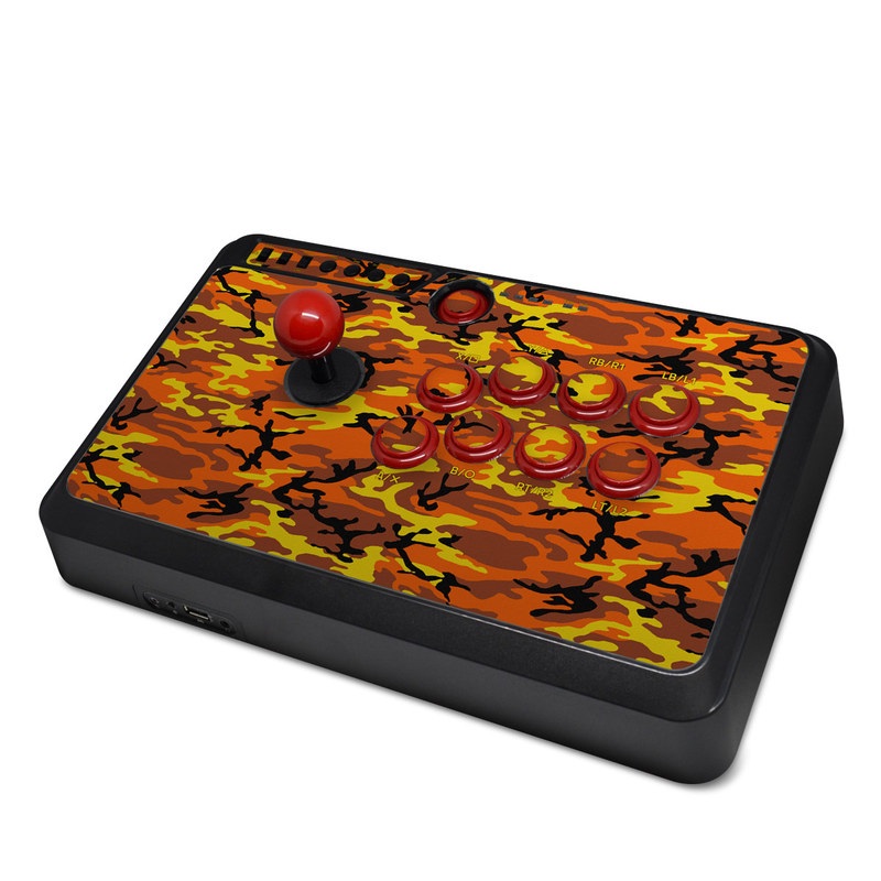 iStyles Mayflash Arcade Fightstick F500 Skin design of Military camouflage, Orange, Pattern, Camouflage, Yellow, Brown, Uniform, Design, Tree, Wildlife, with red, green, black colors, and tagged with military, lookslike, patterns.