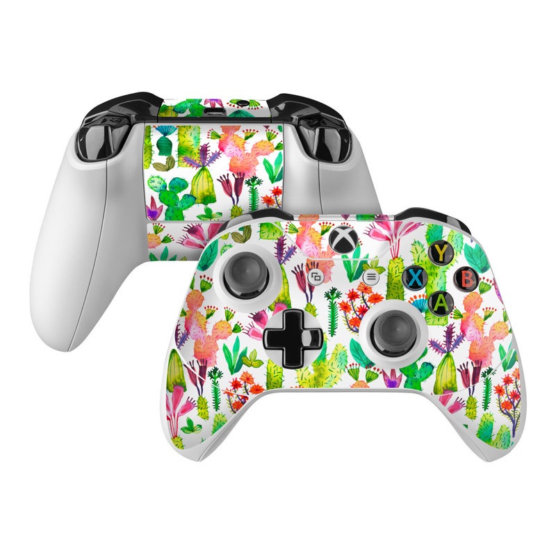 iStyles Xbox One Controller Skin design of Pattern, Floral design, Plant, Wildflower, Wrapping paper, with white, green, red, purple, pink, black colors, and tagged with patterns, nature, flowers, abstract, abstract, bright, cactus, colorful, nature, plants, watercolor.
