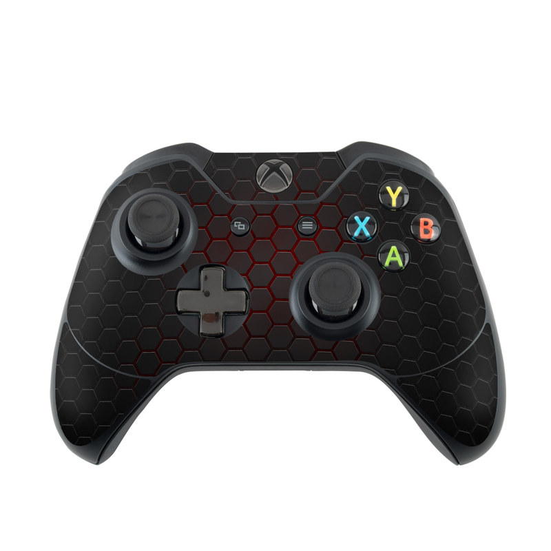 iStyles Xbox One Controller Skin design of Black, Pattern, Metal, Design, Mesh, Carbon, Space, Wallpaper, with black, red colors, and tagged with lookslike, fantasy, space, drones, geometric, hexagon, tech.