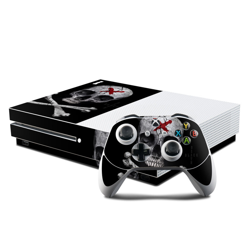 iStyles Xbox One S Skin design of Bone, Skull, Skeleton, Jaw, Illustration, Animation, Fictional character, Still life photography, with black, white, gray colors, and tagged with skulls, black, goth, gothic, skull, skullandcrossbones.