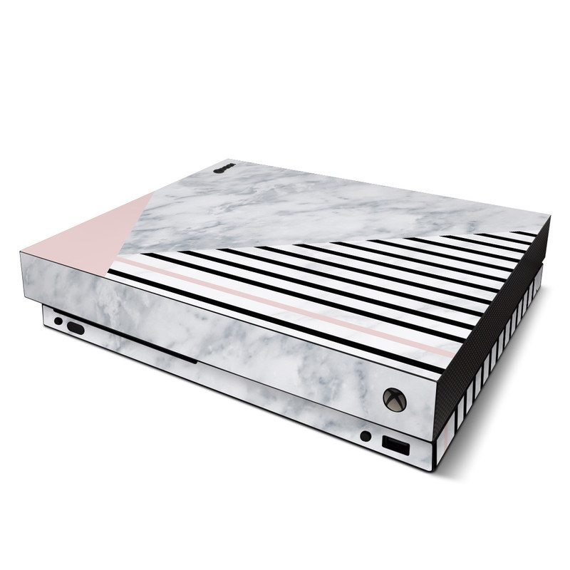 iStyles Xbox One X Skin design of White, Line, Architecture, Stairs, Parallel, with gray, black, white, pink colors, and tagged with patterns.