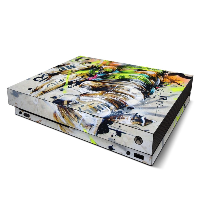 iStyles Xbox One X Skin design of Watercolor paint, Graphic design, Illustration, Acrylic paint, Art, Modern art, Painting, Visual arts, Paint, Graphics, with gray, black, green, red, blue colors, and tagged with abstract, animals.