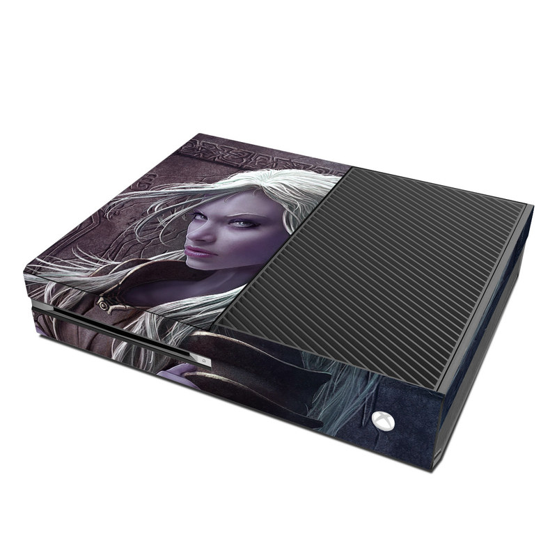 iStyles Xbox One Skin design of Cg artwork, Beauty, Purple, Lady, Illustration, Fictional character, Long hair, Photography, Art, Portrait, with black, gray, purple colors, and tagged with fantasy, people, elf, purple.