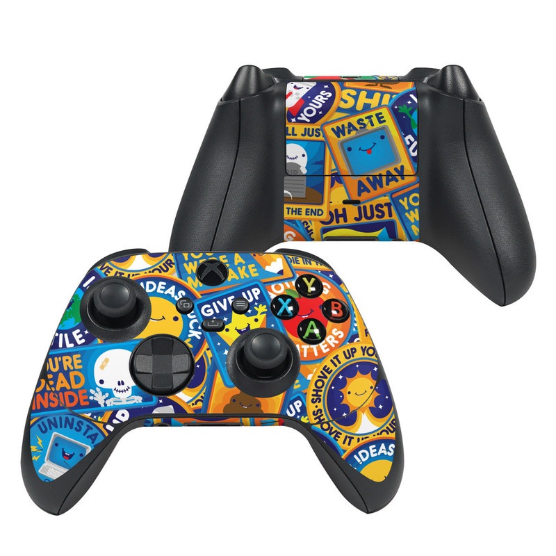 iStyles Xbox Series X Controller Skin design of Pattern, Visual arts, Design, Art, Mosaic, Psychedelic art, with blue, yellow, orange, white, green, red, gray colors, and tagged with patterns, signs, space, objects, hearts, fuck, funny, humor.