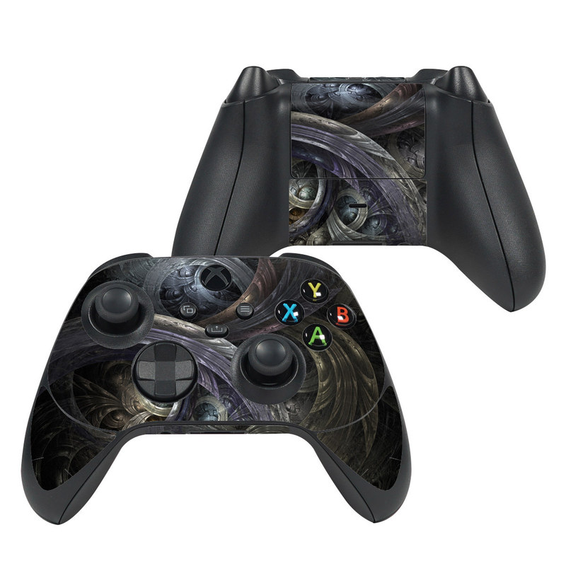 iStyles Xbox Series X Controller Skin design of Fractal art, Graphic design, Art, Cg artwork, Darkness, Circle, Pattern, Illustration, Graphics, Metal, with black, gray, blue colors, and tagged with fractals.