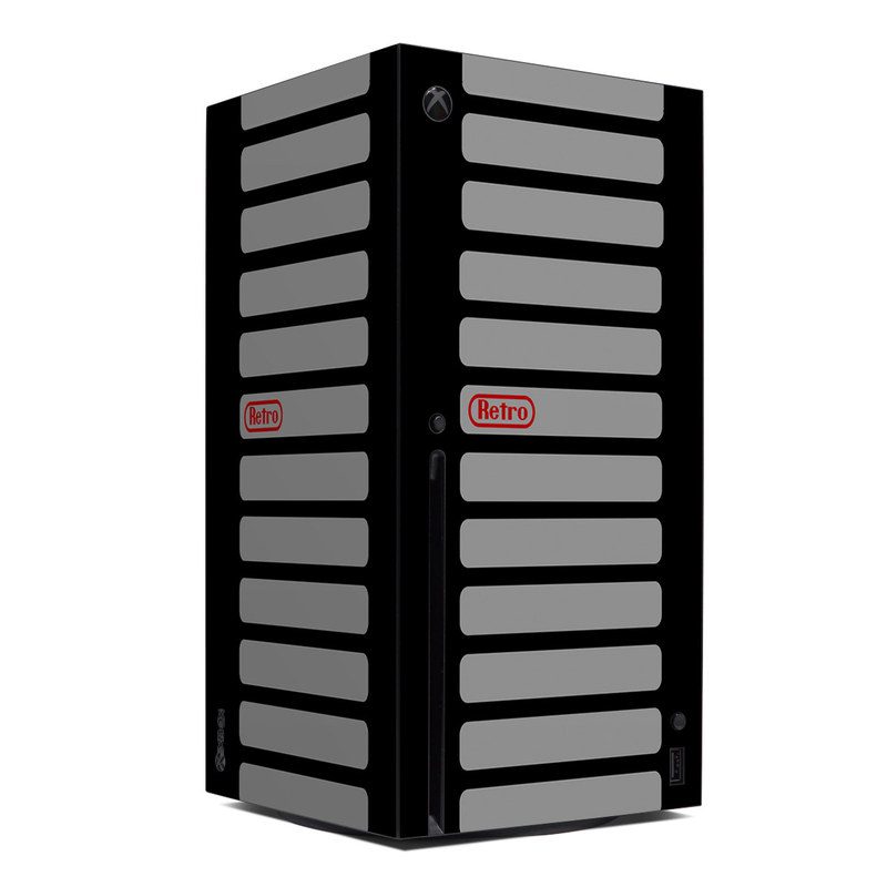 iStyles Xbox Series X Skin design of Text, Black, Font, Logo, Line, Design, Material property, Pattern, Brand, Technology, with black, gray, red colors, and tagged with lookslike, objects, Nintendo.