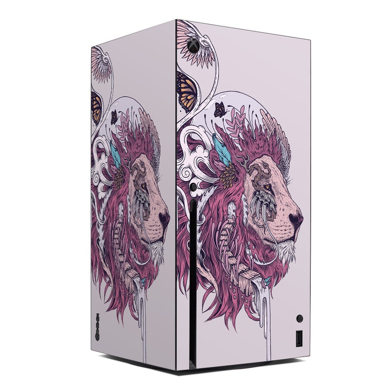 iStyles Xbox Series X Skin design of Illustration, Drawing, Sketch, Art, Graphic design, Lion, Goats, Fictional character, Ink, Bison, with gray, purple, black, red colors, and tagged with animals, abstract.