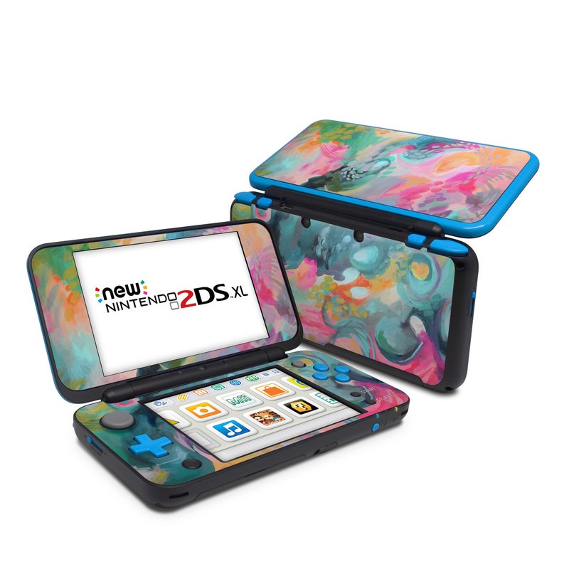 iStyles Nintendo 2DS XL Skin design of Painting, Acrylic paint, Modern art, Art, Pink, Visual arts, Watercolor paint, Pattern, Illustration, Paint, with blue, pink, orange, yellow, green, purple colors, and tagged with abstract, abstract, bright, colorful, fineart, painting.