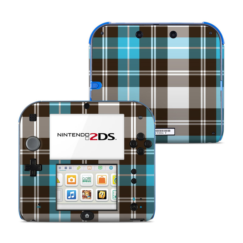 iStyles Nintendo 2DS Skin design of Plaid, Pattern, Tartan, Turquoise, Textile, Design, Brown, Line, Tints and shades, with gray, black, blue, white colors, and tagged with patterns.