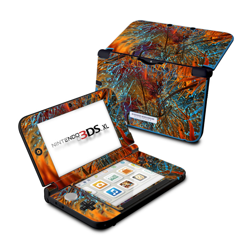 iStyles Nintendo 3DS XL Original Skin design of Orange, Tree, Electric blue, Organism, Fractal art, Plant, Art, Graphics, Space, Psychedelic art, with orange, blue, red, yellow, purple colors, and tagged with patterns.