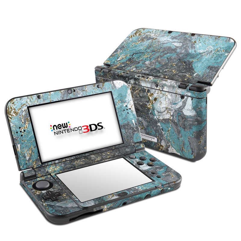 iStyles Nintendo 3DS XL Skin design of Blue, Turquoise, Green, Aqua, Teal, Geology, Rock, Painting, Pattern, with black, white, gray, green, blue colors, and tagged with patterns, lookslike, nature.