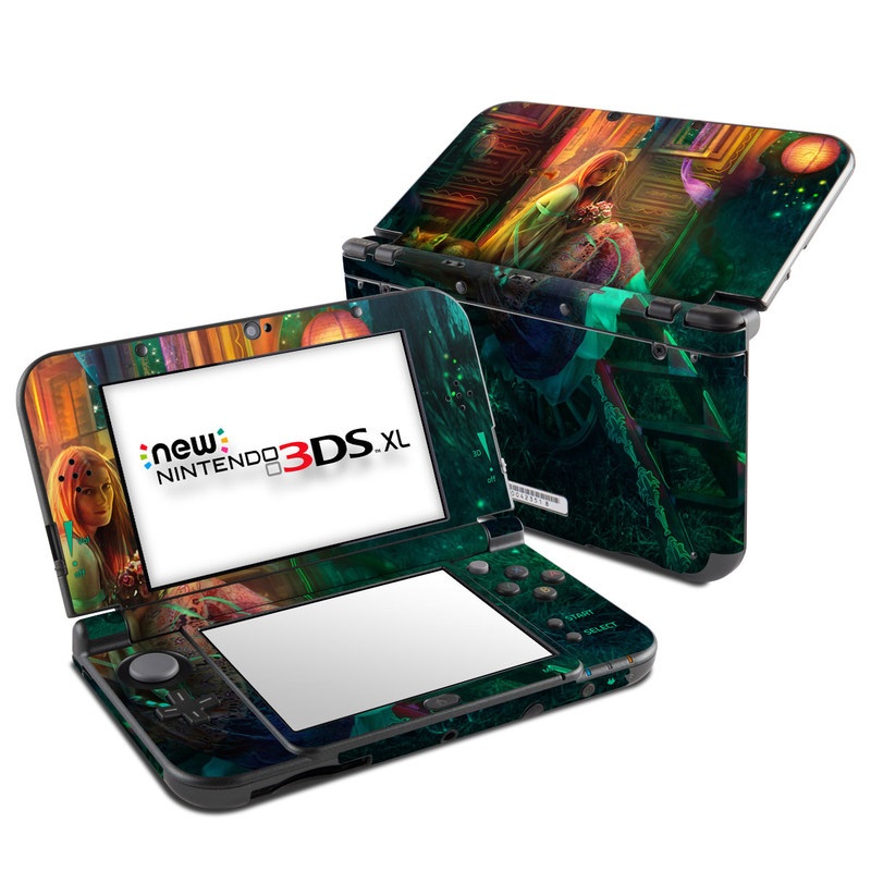 iStyles Nintendo 3DS XL Skin design of Illustration, Adventure game, Darkness, Art, Digital compositing, Fictional character, Games, with black, red, blue, green colors, and tagged with fineart, animals, objects, people, urban.