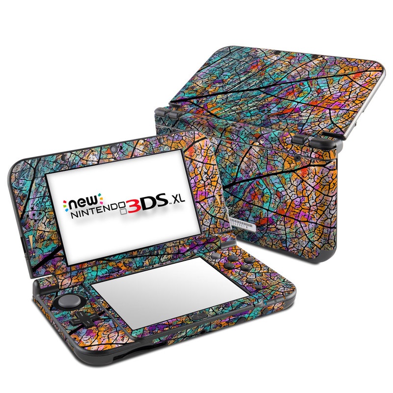 iStyles Nintendo 3DS XL Skin design of Pattern, Colorfulness, Line, Branch, Tree, Leaf, Design, Visual arts, Glass, Plant, with black, gray, red, blue, green colors, and tagged with patterns, nature.