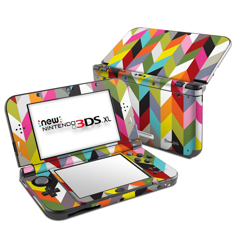 iStyles Nintendo 3DS XL Skin design of Pattern, Orange, Line, Design, Graphic design, Tints and shades, Triangle, with red, green, gray, black, blue, purple colors, and tagged with patterns.