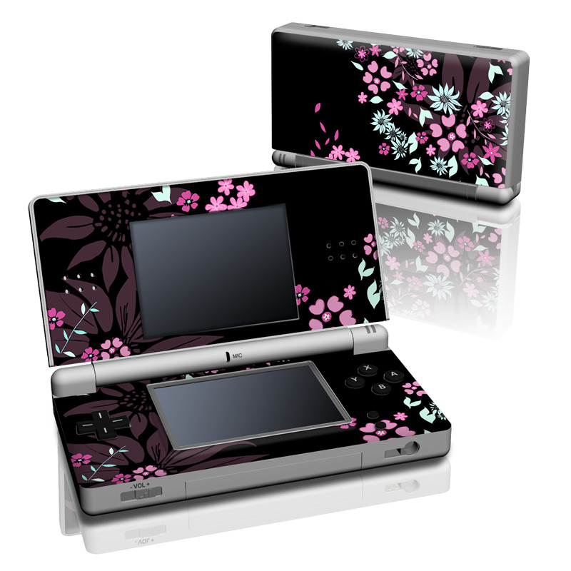 iStyles Nintendo DS Lite Skin design of Pink, Pattern, Flower, Plant, Botany, Petal, Floral design, Design, Pedicel, Graphic design, with black, gray, purple, green, red, pink colors, and tagged with flowers, abstract, patterns.