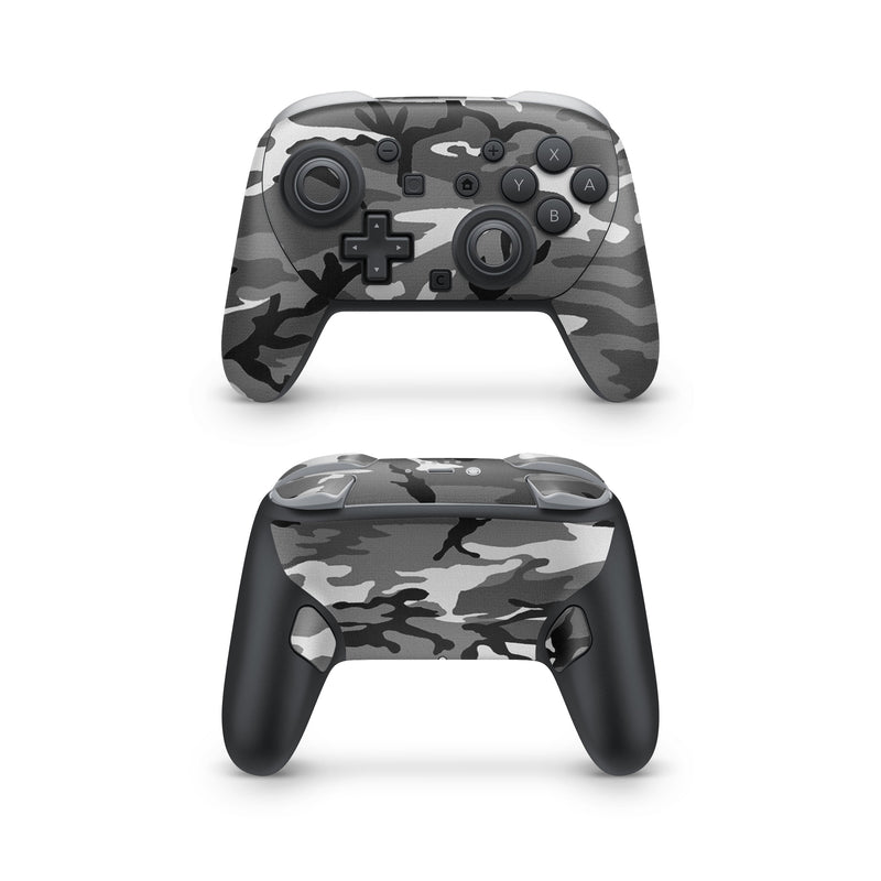 iStyles Nintendo Switch 2 Pro Controller Skin design of Military camouflage, Pattern, Clothing, Camouflage, Uniform, Design, Textile, with black, gray colors, and tagged with military, lookslike, patterns.