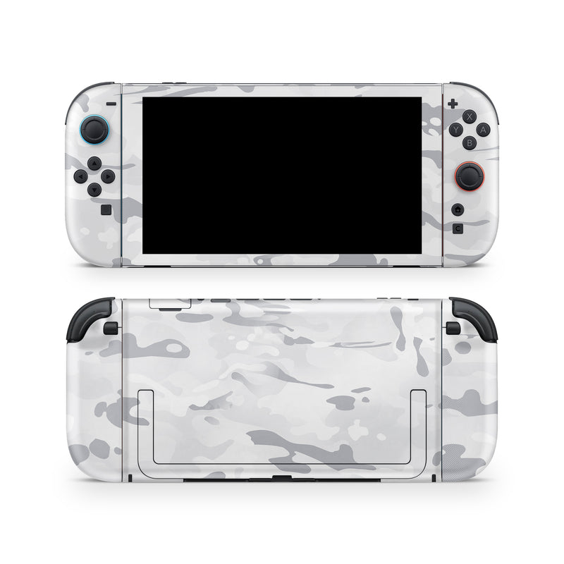 iStyles Nintendo Switch 2 Skin design of Vertebrate, Mammal, Grey, Pattern, Monochrome, Art, Monochrome photography, Rock, Font, Winter, with white, gray colors, and tagged with military, patterns, snow, camouflage, mountain, white.