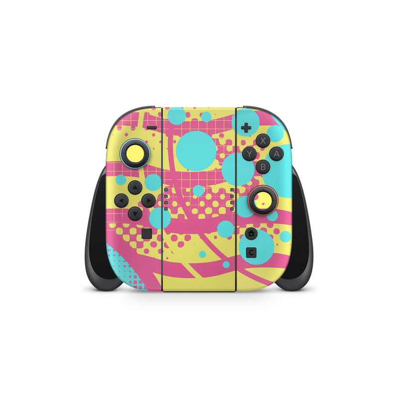 iStyles Nintendo Switch 2 Skin design of Textile, Organism, Font, Art, Pink, Rectangle, Line, Aqua, Magenta, Circle, with pink, yellow, blue, black, white colors, and tagged with abstract, abstract, waves, circle, square, lines.