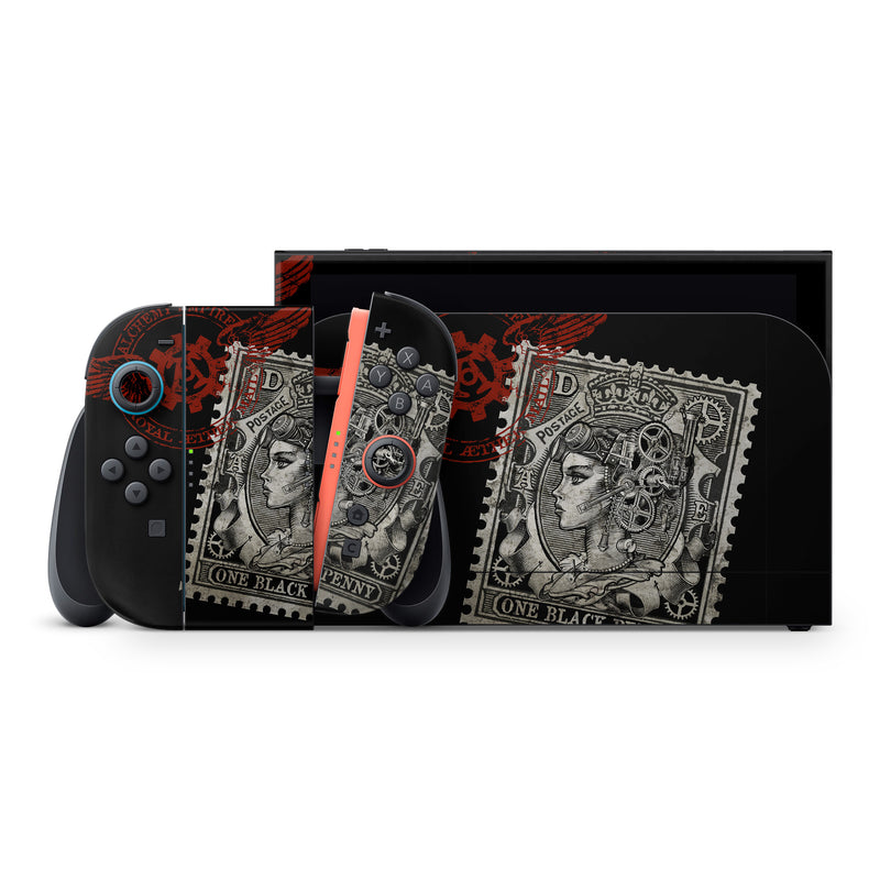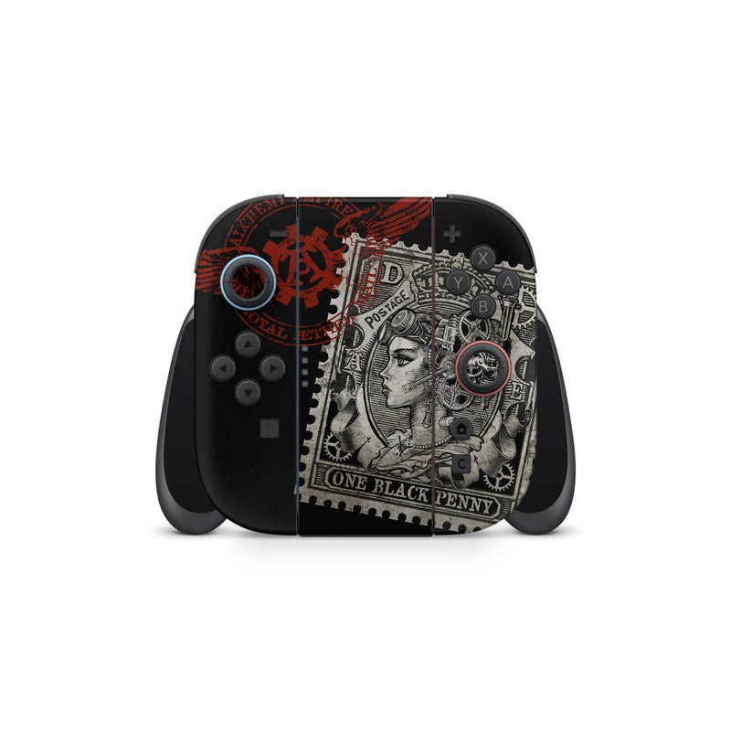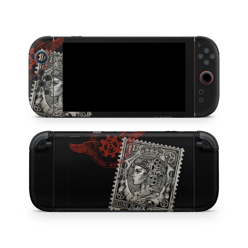 iStyles Nintendo Switch 2 Skin design of Font, Postage stamp, Illustration, Drawing, Art, with black, gray, red colors, and tagged with people, objects, signs.