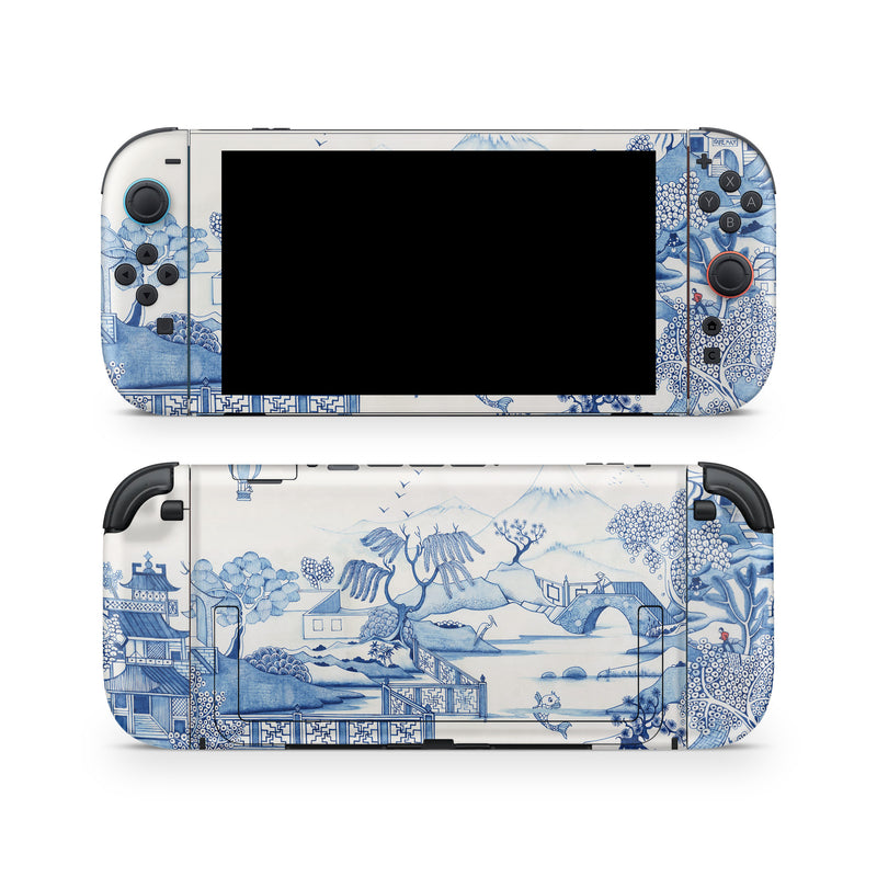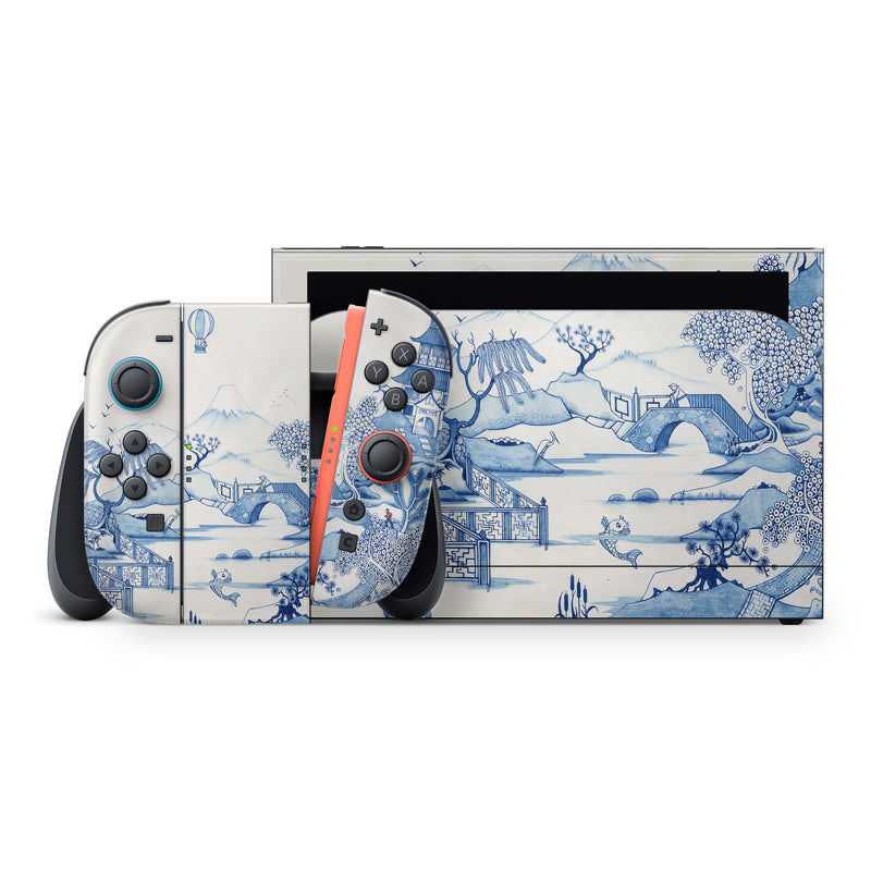 iStyles Nintendo Switch 2 Skin design of Blue, Blue and white porcelain, Winter, Christmas eve, Illustration, Snow, World, Art, with blue, white colors, and tagged with urban, objects, animals, nature.