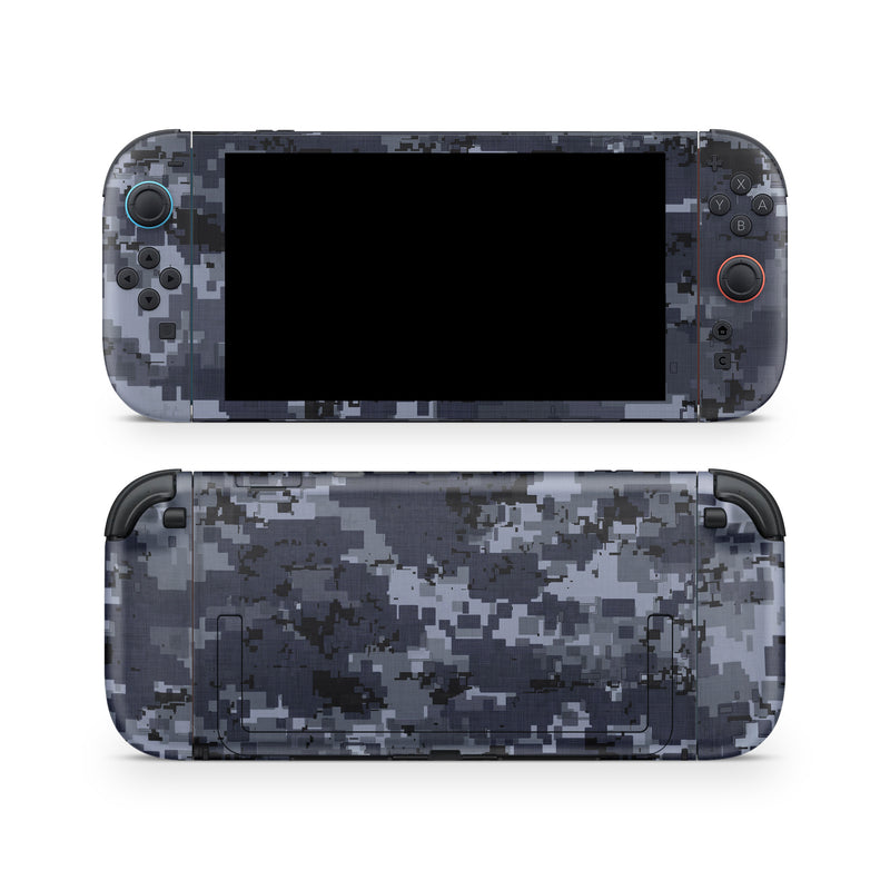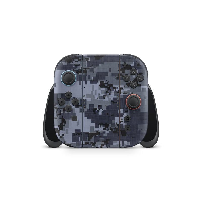 iStyles Nintendo Switch 2 Skin design of Military camouflage, Black, Pattern, Blue, Camouflage, Design, Uniform, Textile, Black-and-white, Space, with black, gray, blue colors, and tagged with military, lookslike, patterns.