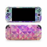 iStyles Nintendo Switch 2 Skin design of Pattern, Purple, Triangle, Violet, Magenta, Line, Design, Symmetry, Psychedelic art, with gray, purple, green, blue, pink colors, and tagged with patterns.