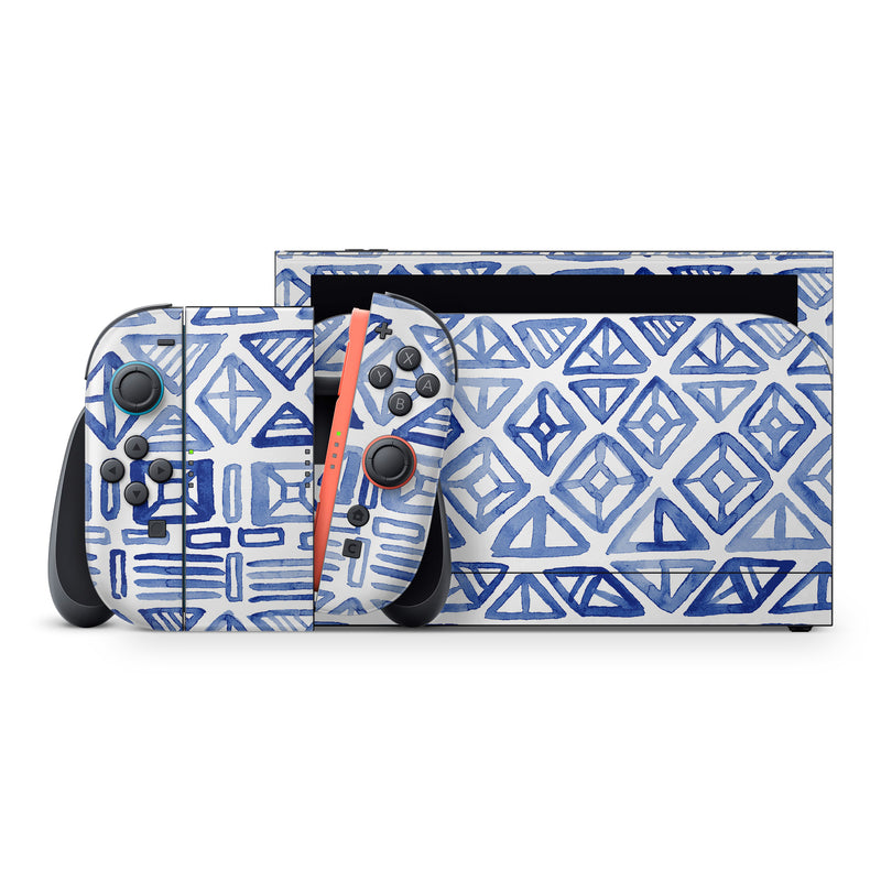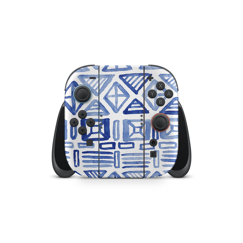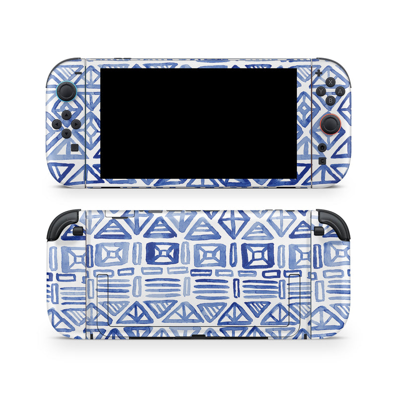 iStyles Nintendo Switch 2 Skin design of Pattern, Line, Design, Symmetry, Visual arts, Parallel, with white, blue colors, and tagged with patterns, blue, geometric, magpiemoon, pattern, tribal, watercolor, white.