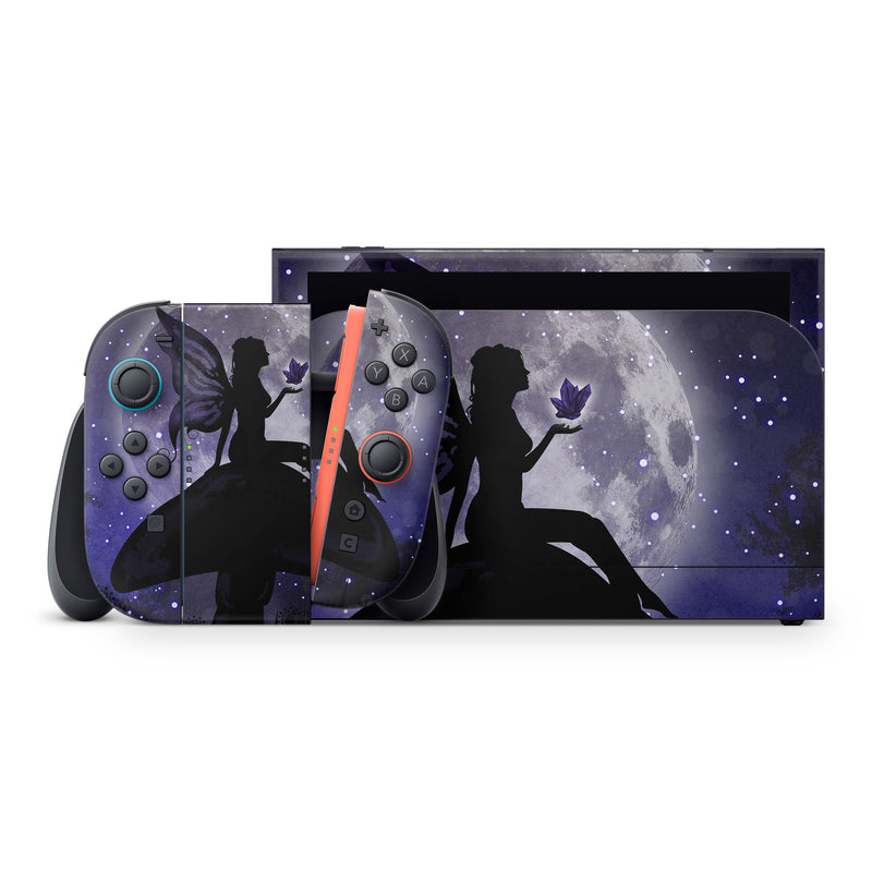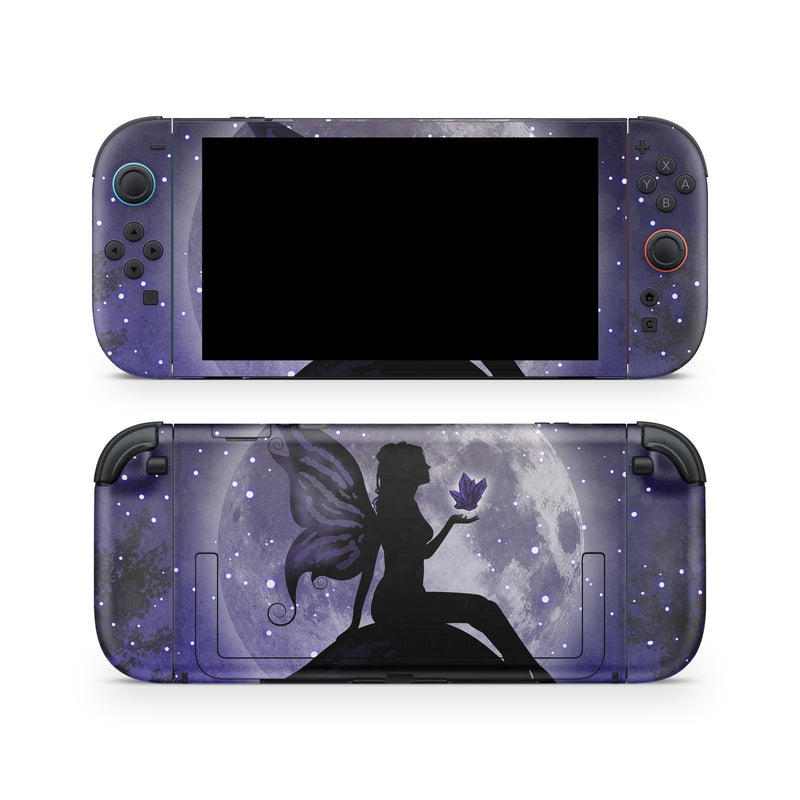 iStyles Nintendo Switch 2 Skin design of Purple, Sky, Moonlight, Cg artwork, Fictional character, Darkness, Night, Illustration, Space, Star, with black, blue, gray, purple colors, and tagged with animals, fantasy.