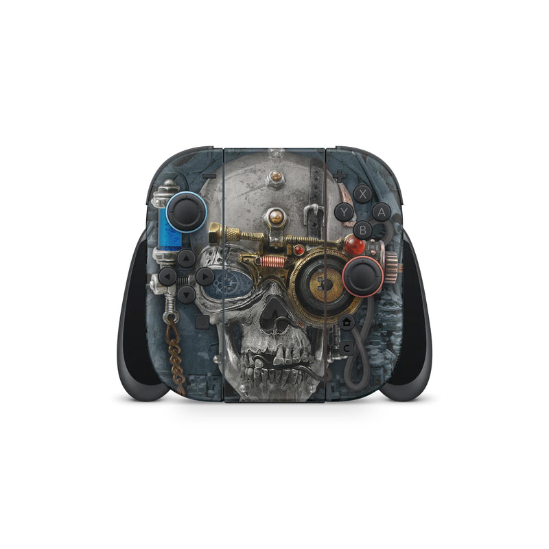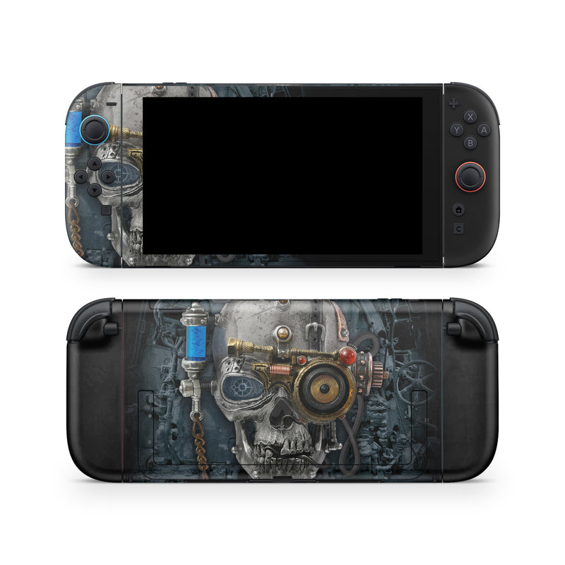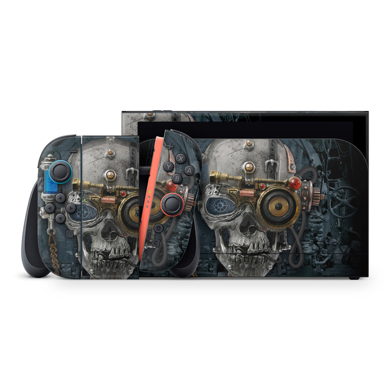 iStyles Nintendo Switch 2 Skin design of Engine, Auto part, Still life photography, Personal protective equipment, Illustration, Automotive engine part, Art, with black, gray, red, green colors, and tagged with skulls, objects.