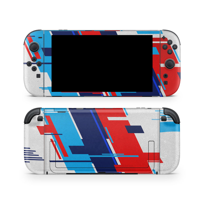 iStyles Nintendo Switch 2 Skin design of Azure, Font, Material property, Parallel, Electric blue, Slope, Graphics, Carmine, Brand, Rectangle, with gray, blue, black, red, purple colors, and tagged with patterns, lookslike, speed, sport, stripes, lines.