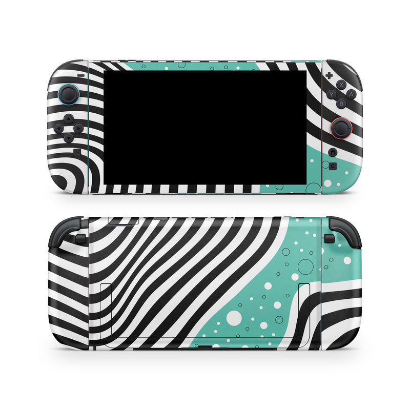 iStyles Nintendo Switch 2 Skin design of White, Rectangle, Art, Line, Aqua, Pattern, Electric blue, Visual arts, Font, Graphics, with white, black, blue, green colors, and tagged with patterns, sugar, dots.