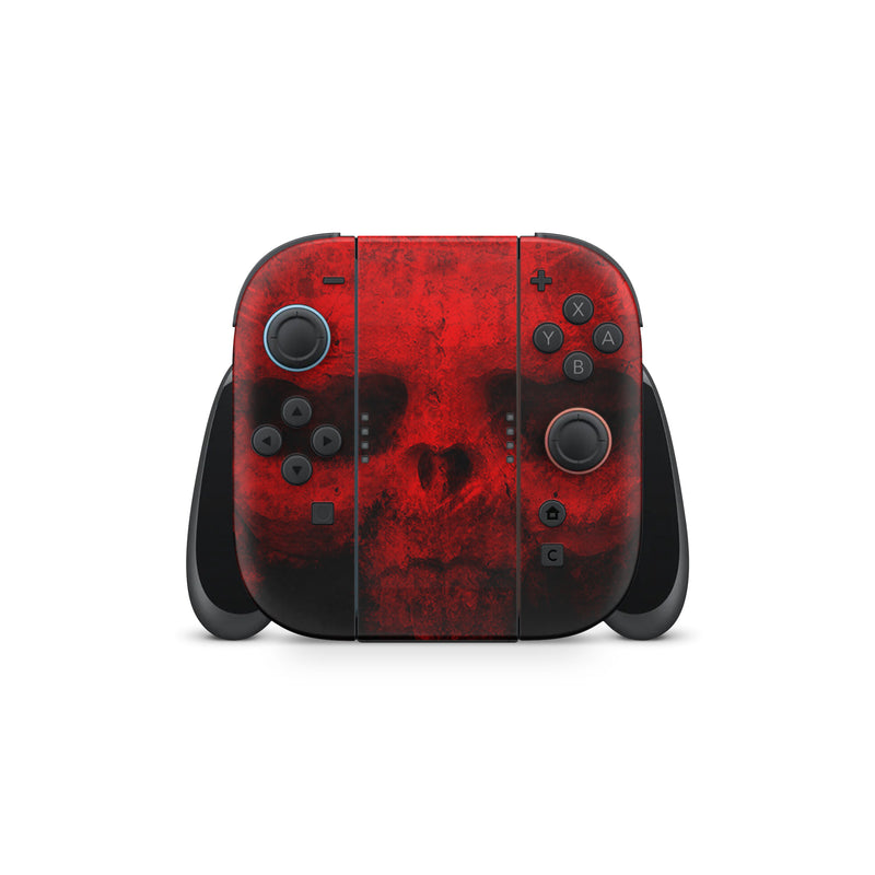 iStyles Nintendo Switch 2 Skin design of Red, Skull, Bone, Darkness, Mouth, Graphics, Pattern, Fiction, Art, Fractal art, with black, red colors, and tagged with skulls.