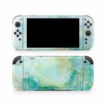 iStyles Nintendo Switch 2 Skin design of Blue, Watercolor paint, Aqua, Line, Sky, Design, Pattern, Art, Illustration, with blue, yellow, orange colors, and tagged with abstract, abstract, blue, marble.