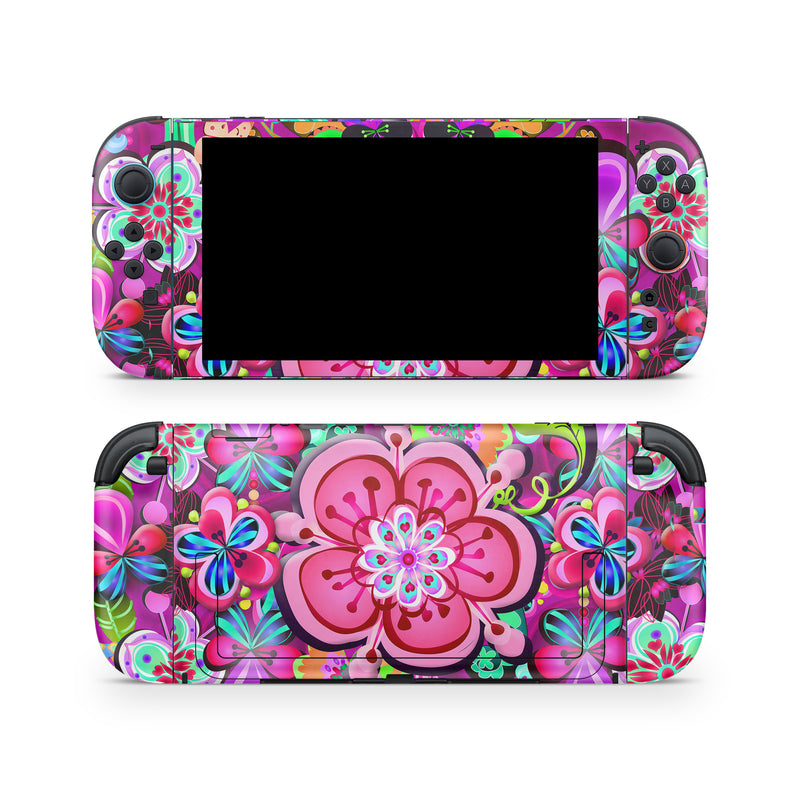 iStyles Nintendo Switch 2 Skin design of Pattern, Pink, Design, Textile, Magenta, Art, Visual arts, Paisley, with purple, black, red, gray, blue colors, and tagged with patterns, flowers.