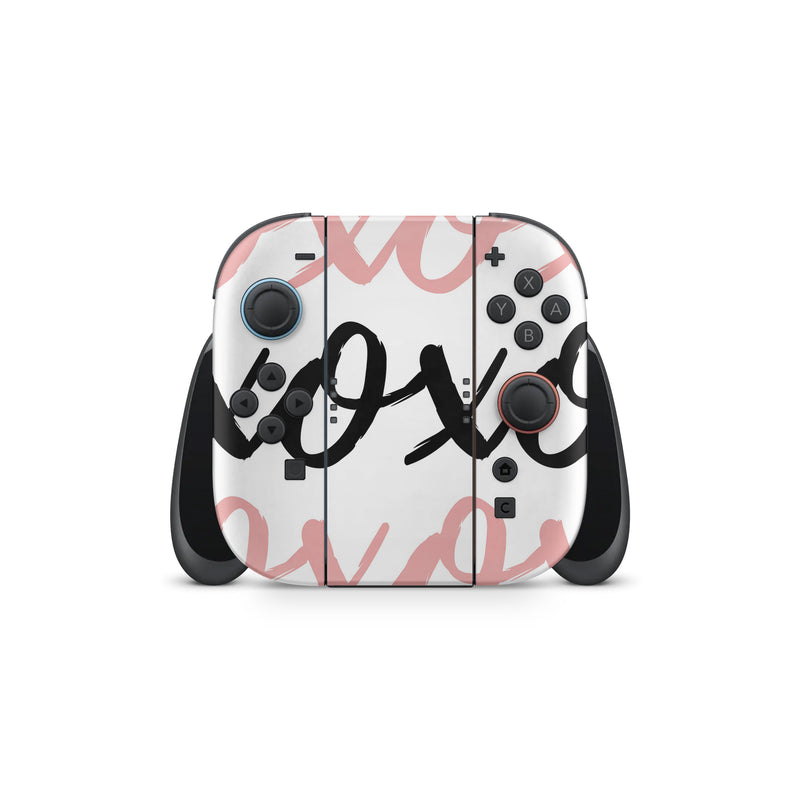 iStyles Nintendo Switch 2 Skin design of Font, Pattern, Magenta, Art, Event, Calligraphy, with white, pink, black colors, and tagged with signs, patterns, love, kisses, valentine.