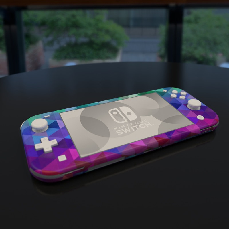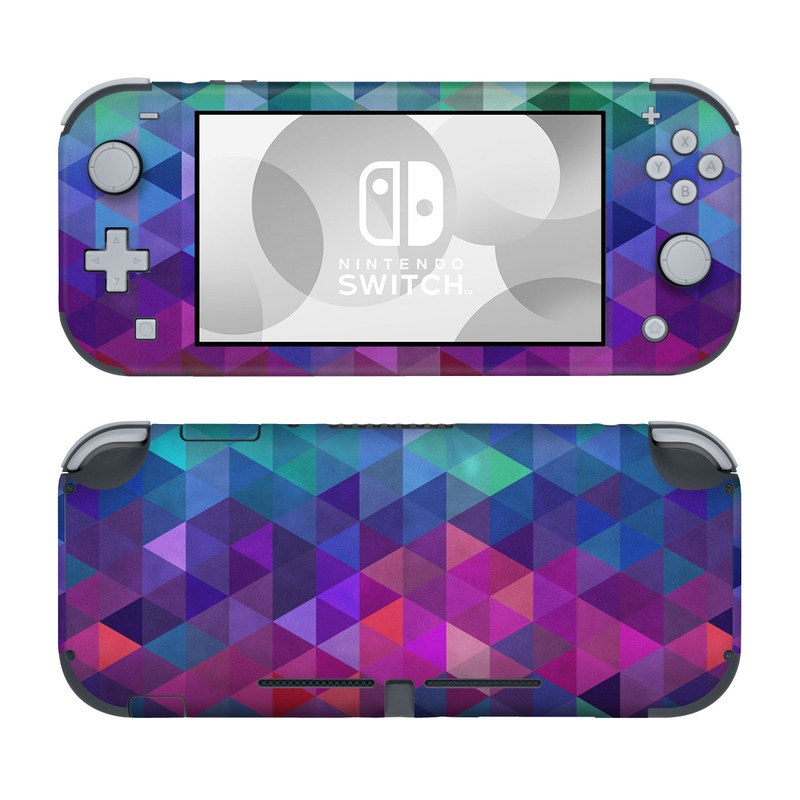 iStyles Nintendo Switch Lite Skin design of Purple, Violet, Pattern, Blue, Magenta, Triangle, Line, Design, Graphic design, Symmetry, with blue, purple, green, red, pink colors, and tagged with patterns.
